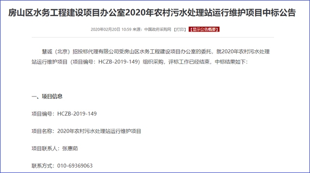 截圖源于中國政府采購網(wǎng) 源于中國政府采購網(wǎng)近日公開消息,由北京金河水務建設集團有限公司、華航環(huán)境發(fā)展有限公司、北京中聯(lián)環(huán)工程股份有限公司組成的聯(lián)合體預中標北京市房山區(qū)農(nóng)村污水治理工程(處理站一片區(qū)、二片區(qū))PPP項目(編號:GXTC-A-1961004)。運維服務水費單價為4.11元/㎡、可用性年付...