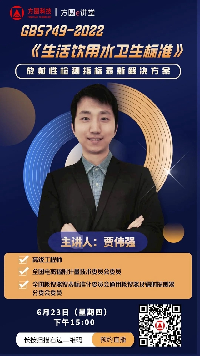 2022年3月15日,國家市場監(jiān)督管理總局和國家標(biāo)準(zhǔn)化管理委員會聯(lián)合發(fā)布GB 5749-2022《生活飲用水衛(wèi)生標(biāo)準(zhǔn)》,方圓e講堂為您帶來新標(biāo)準(zhǔn)中放射性檢測指標(biāo)最新解決方案。 01 課程主題 GB5749-2022《生活飲用水衛(wèi)生標(biāo)準(zhǔn)》中放射性檢測指標(biāo)最新解決方案 02 資深講師 賈偉強(qiáng):高級工程師...