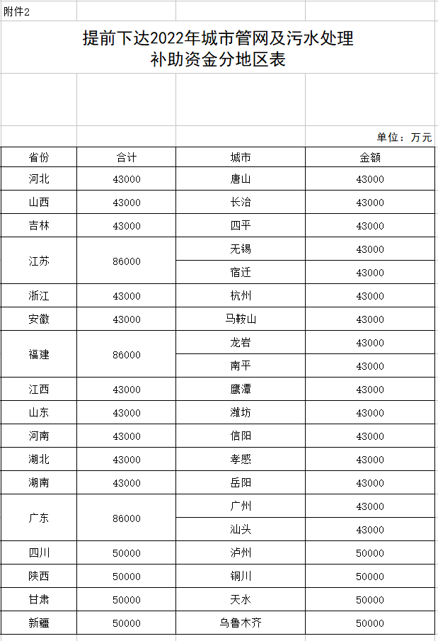廣東省財(cái)政廳關(guān)于提前下達(dá)2022年中央城市管網(wǎng)及污水處理補(bǔ)助資金的通知粵財(cái)建〔2021〕54號(hào)廣州市、汕頭市財(cái)政局: 根據(jù)《財(cái)政部關(guān)于提前下達(dá)2022年城市管網(wǎng)及污水處理補(bǔ)助資金預(yù)算的通知》(財(cái)建〔2021〕338號(hào)),現(xiàn)將2022年中央城市管網(wǎng)及污水處理補(bǔ)助資金預(yù)算資金提前轉(zhuǎn)下達(dá)給你們(具體金額詳...